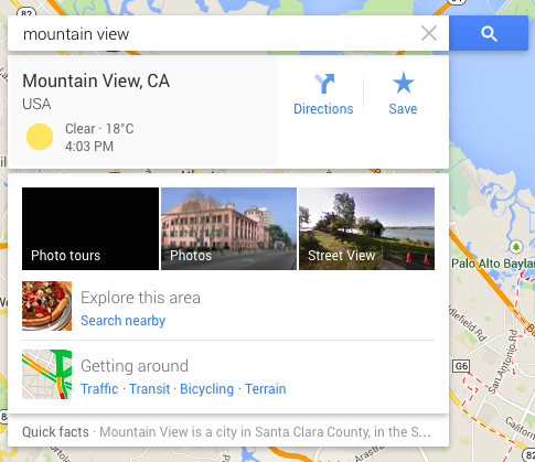 It's much easier than using Google Search to find a place and then switching to Google Maps and searching for it.