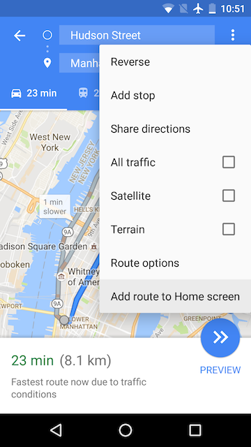 Another option is to add the directions widget, which lets you pick the shortcut name, whether to start turn-by-turn navigation and more.